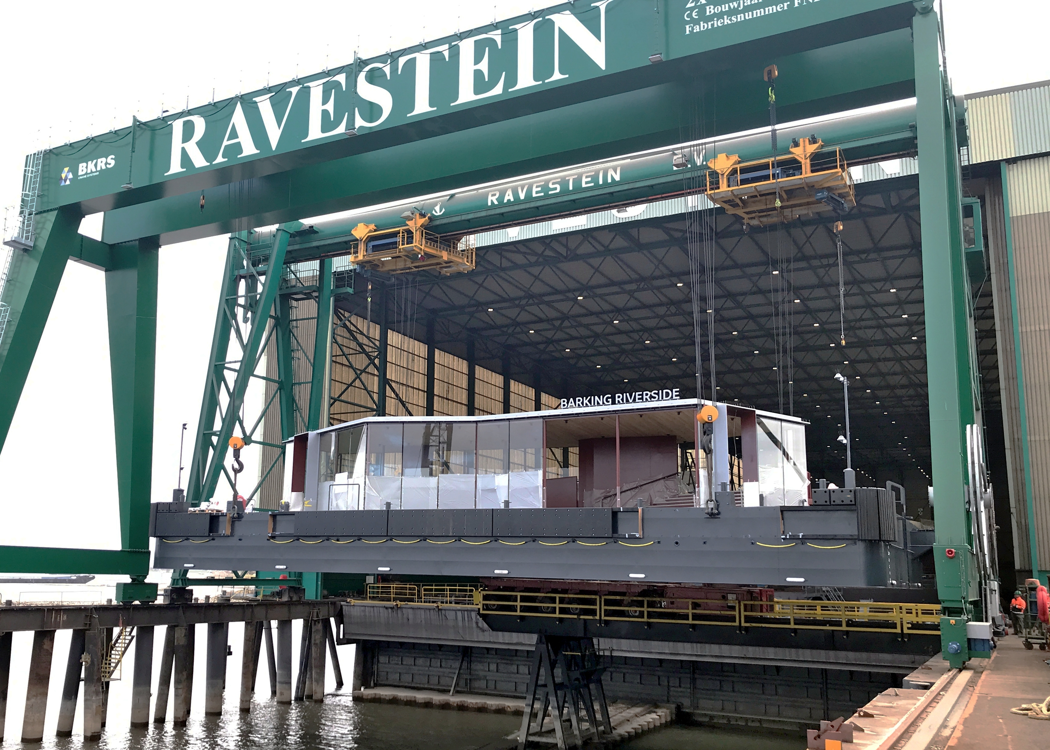 barking4.jpgThe link-span and pontoon, complete with a high-quality steel, glass and timber waiting room, were manufactured in the Netherlands by Ravestein BV and delivered to site by crane barge. Two guide piles secure the jetty while two berthing piles provide space for two vessels to moor at the same time.